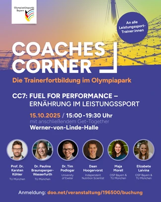 Im Oktober 2025 richtet der Olympiastützpunkt Bayern zwei weitere Ausgaben der etablierten Veranstaltungsreihe Coaches Corner aus. Die Formate greifen aktuelle Themen aus Wissenschaft und Praxis auf und bieten Raum für sportartenübergreifenden Austausch.