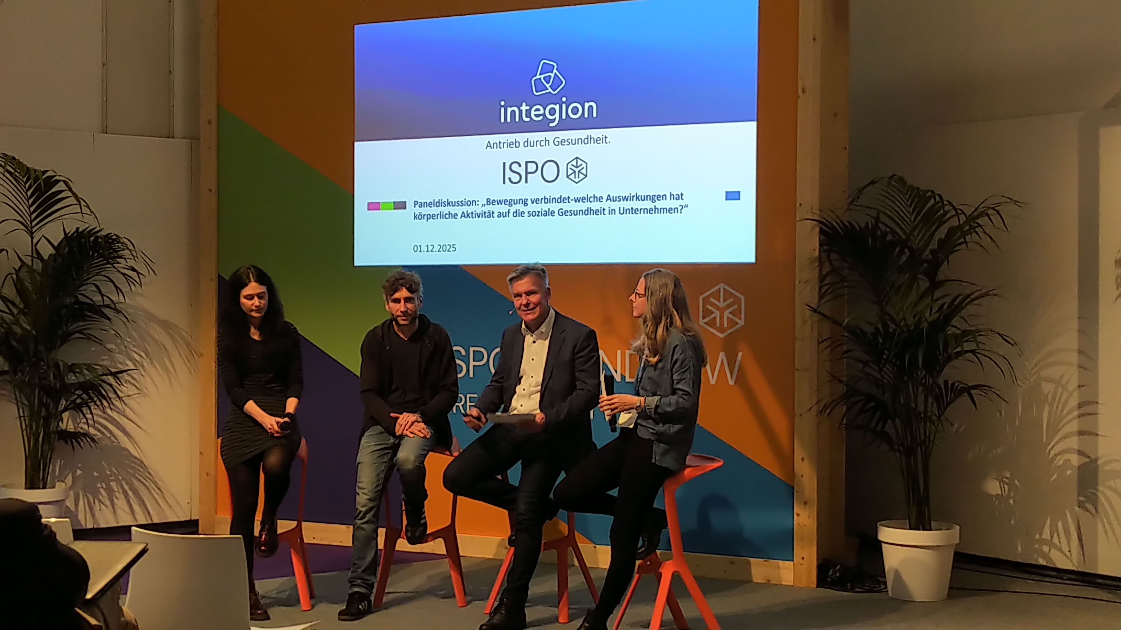In die Ausstellungsfläche integriert, auf der „Brandnew & Corporate Health Stage“ – quasi direkt neben den Padel- und Pickleball-Feldern – fand das Panel „Bewegung verbindet – welche Auswirkungen hat körperliche Aktivität auf die soziale Gesundheit?“ statt. Prof. Filip Mess und Dr. Doris Gebhard vom Lehrstuhl für Sport- und Gesundheitsdidaktik diskutierten gemeinsam mit Sandra Freisinger, verantwortlich für Corporate Health bei Infineon Technologies Deutschland, und Swen Grauer, CEO der Integion GmbH, über die Relevanz sozialer Gesundheit für Beschäftigte. Der aktuelle Bericht des Gallup Instituts zeigt, dass sich weltweit jede*r fünfte Beschäftigte im Arbeitskontext einsam fühlt. Erste Studien belegen zugleich, dass Einsamkeit im Arbeitskontext mit höheren Burnout-Raten, geringerer Arbeitszufriedenheit, erhöhten Fehlzeiten und reduzierter beruflicher Leistungsfähigkeit einhergeht. Wie sich soziale Gesundheit sowohl auf individueller Ebene als auch im Team fördern lässt und welche Rolle Bewegung und Sport dabei spielen können, wurde im Rahmen der Paneldiskussion aus wissenschaftlicher Perspektive beleuchtet und durch Praxisbeispiele veranschaulicht.